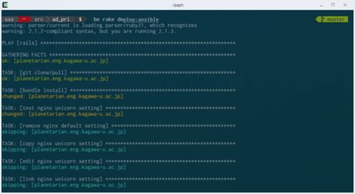 インターンシップで構成管理ツールのansibleを使う機会があり,それから愛用するようになった. ansibleではyaml形式でplaybookと呼ばれるレシピを書き,それをssh経由で実行する. (操作を抽象化するモジュールが標準で多く準備されている.ドキュメント参…